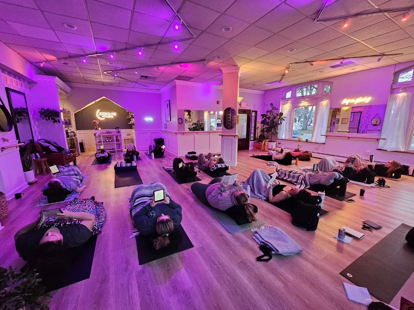 Come join this restorative yoga practice where we hold passive poses and read our favorite books while sipping on hot tea and wine! Wear your coziest sweats and bring along your book and book light (or ebook)!